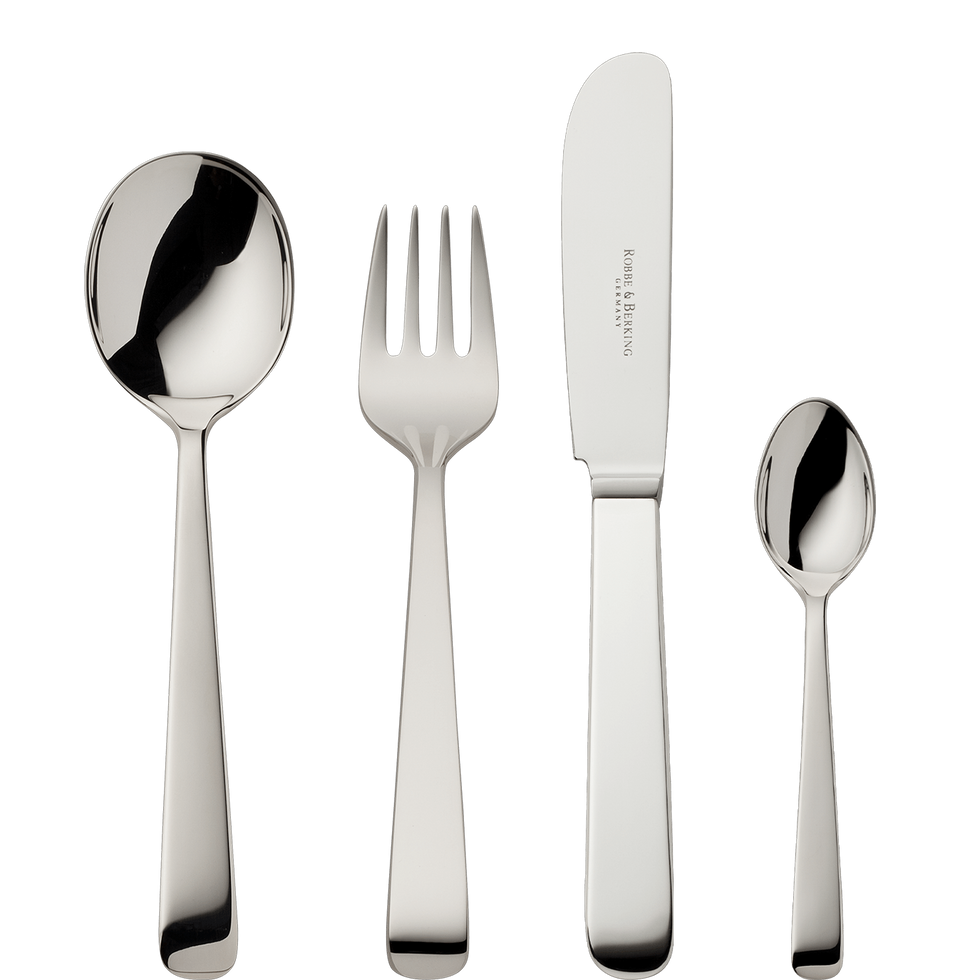 Wer mit einem silbernen Löffel im Mund geboren wurde, habe besonders gute Startmöglichkeiten ins Leben mitbekommen. So heißt es in einer umgangssprachlichen Redewendung. Ihre Bedeutung ist jedoch tiefgründiger, als man vermuten würde: Die antibakteriellen Eigenschaften von Silber machen das Kinderbesteck von Robbe & Berking äußerst hygienisch. Zudem besitzt Silber temperaturausgleichende Eigenschaften, wodurch das Besteck ein wohliges Gefühl im Mund vermittelt. Das 4-teilige Kinderbesteck besteht aus einem großen Kinderlöffel, einem kleinen Kinderlöffel, Kindergabel und Kindermesser. Mit einer individuellen Namensgravur wird aus jedem Kinderbesteck ein liebevolles Geschenk zur Geburt, zur Taufe oder zum Geburtstag.